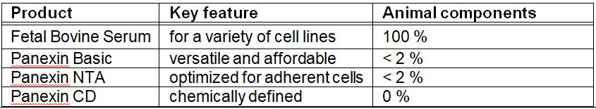 | Panexin CD, Serum Replacement with Defined Components | Panexin CD is an innovative brand-new product, developed based on the current state of science and 15 years of experience in developing serum replacements. Compared to Pan Biotech’s other serum replacements, Panexin CD contains only chemically defined components. ![]() |