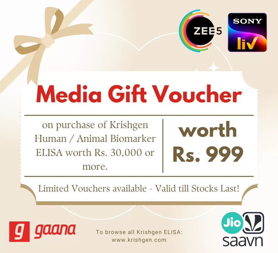 Get a Rs. 999 Media Voucher Free with any purchase of Krishgen Human or Animal Biomarker / Cytokine ELISA kits worth Rs. 30,000 or more!