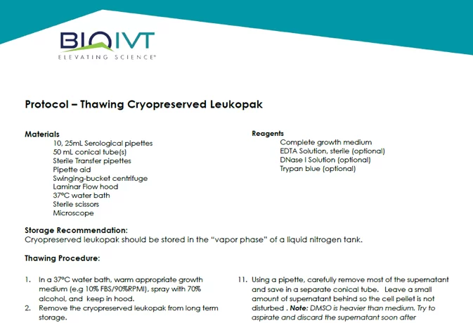 Cryopreserved products should be immediately transferred to liquid nitrogen vapor (-150°C or below). Other fractions may have specific storage instructions detailed on the product datasheet
