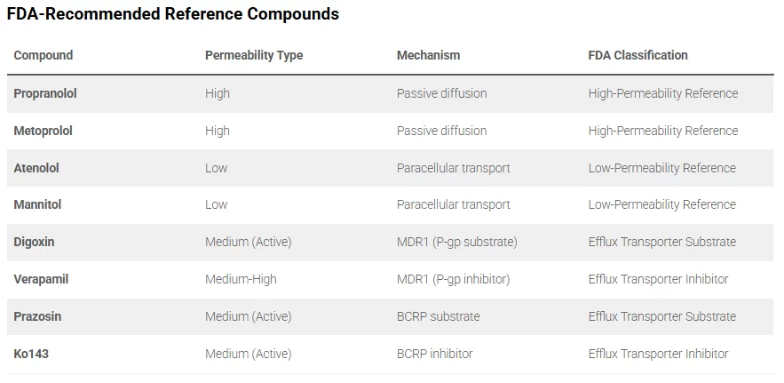 Recommended reference compounds for permeability assays