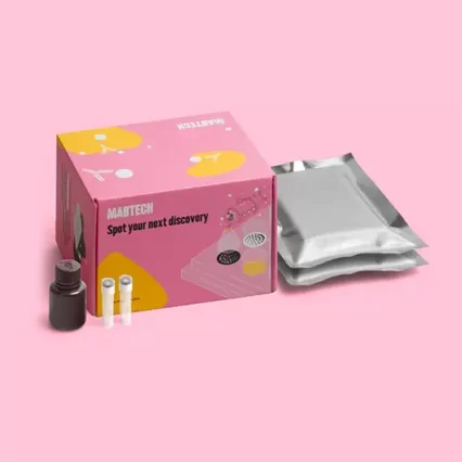 FluoroSpot is the multiplex version of ELISpot. Just like in the ELISpot assay, target proteins secreted by cells are captured by specific antibodies immediately after secretion and throughout the stimulation process, making it an extremely sensitive sandwich assay. The difference to ELISpot lies in the mode of detection: where ELISpot relies on an enzymatic reaction, FluoroSpot utilizes fluorescence. This opens up for multiplex analyses of several analytes simultaneously, enabling studies of cell populations with different functional profiles.