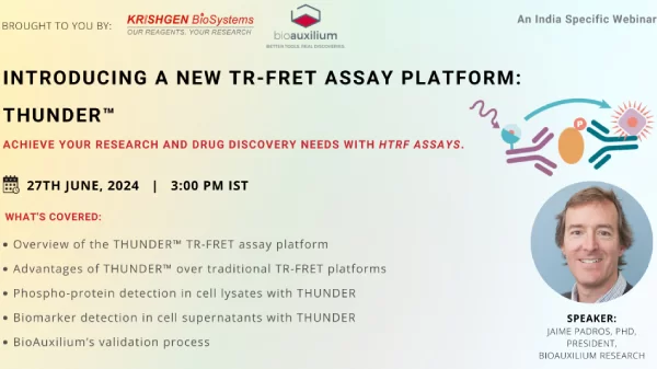 Join our upcoming webcast, presented by Bioauxilium on June 27, 2024 for exclusive insights on Introduction to BioAuxilium's THUNDER™ TR-FRET Assay Platform with Jaime Padros, PhD, President, at our principle company BioAuxilium Research.