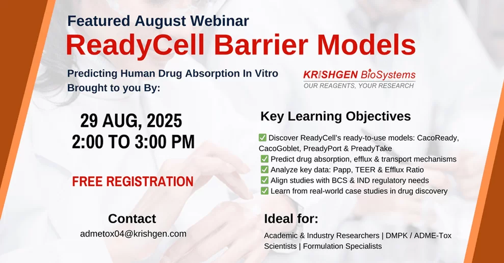 This scientific webinar brings together expert insights on leveraging ReadyCell’s Caco-2 and MDCK cell-based models to accurately simulate human intestinal barriers. Learn how these in vitro platforms enable comprehensive assessment of passive diffusion, active transport, and efflux, guiding compound selection and formulation decisions.